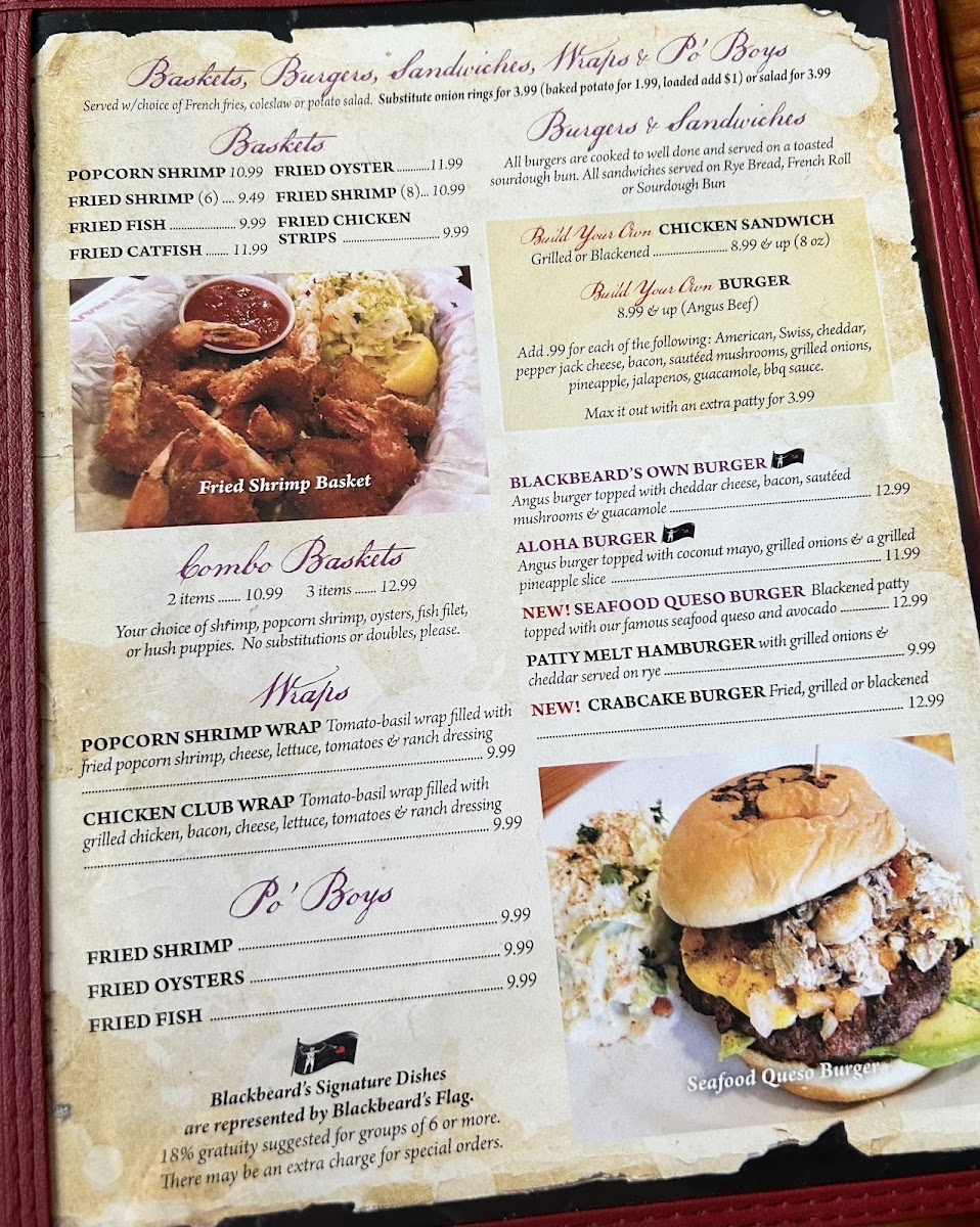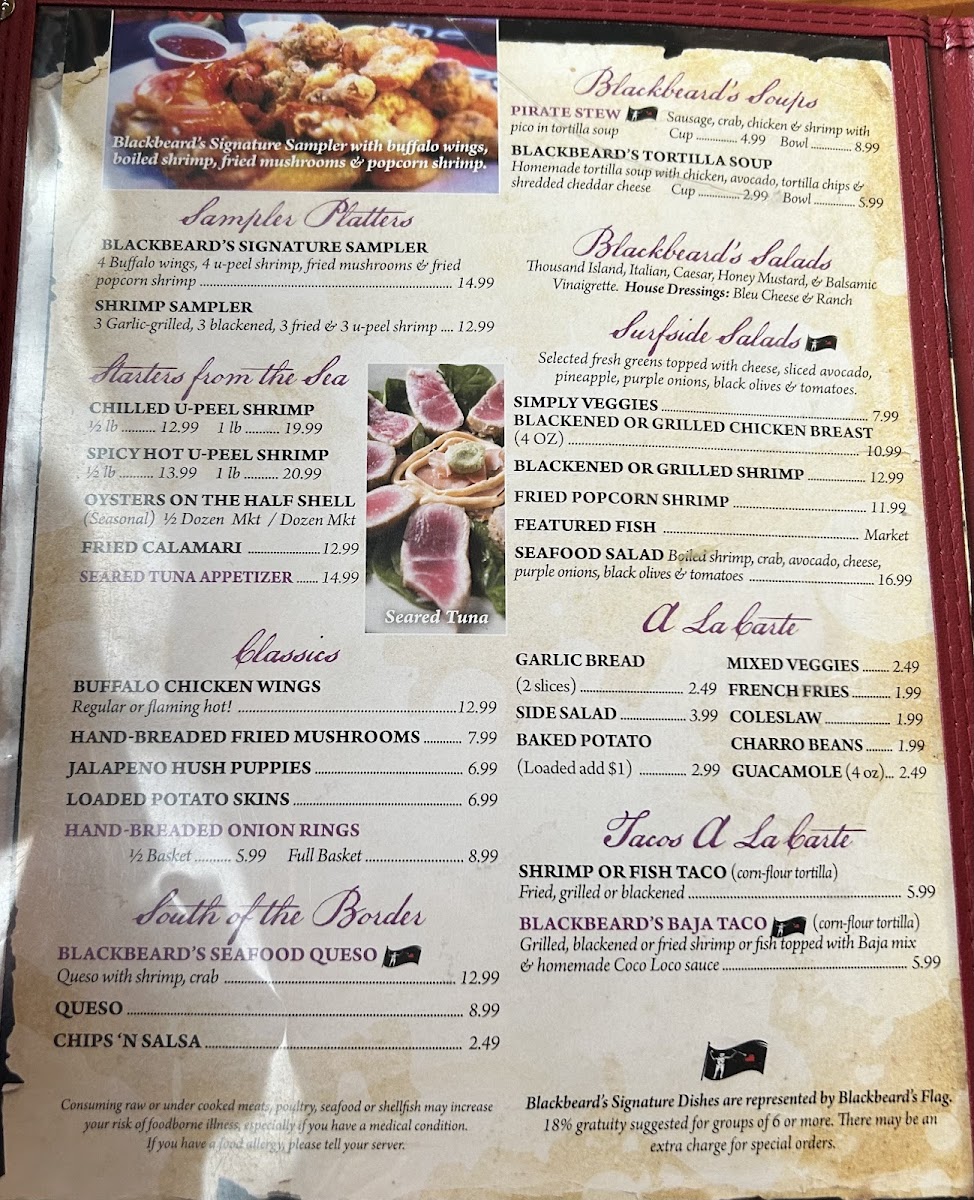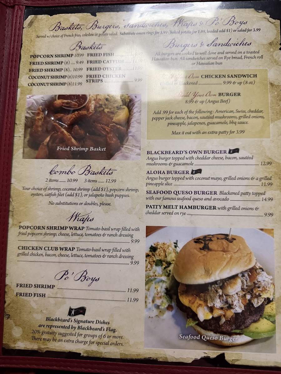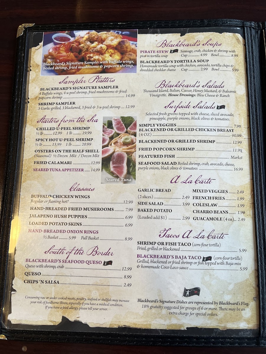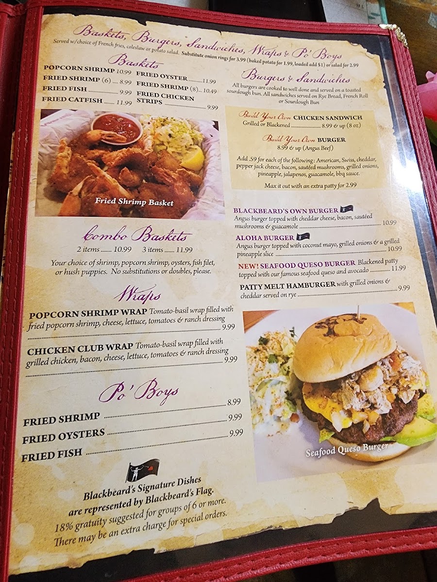 Nestled along the vibrant coastline of Corpus Christi, Blackbeard's On The Beach Menu offers a delightful fusion of fresh seafood and coastal flavors. Whether you're in the mood for a juicy burger, crispy fried shrimp, or the catch of the day, there's something to satisfy every craving. With its relaxed atmosphere and stunning beach views, it's the perfect spot to enjoy your meal with friends or family. From the savory appetizers to the satisfying entrees, each dish is crafted with quality ingredients, ensuring that every bite is as memorable as the ocean breeze. The menu also features unique options like the signature seafood platters, ideal for those who want to indulge in a little bit of everything. Whether you’re visiting for a casual lunch or a sunset dinner, Blackbeard’s promises a satisfying meal that’s sure to keep you coming back for more.